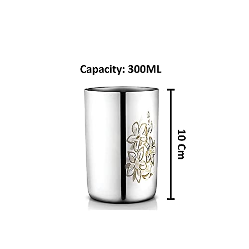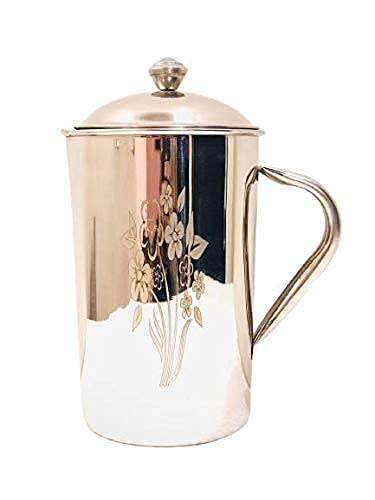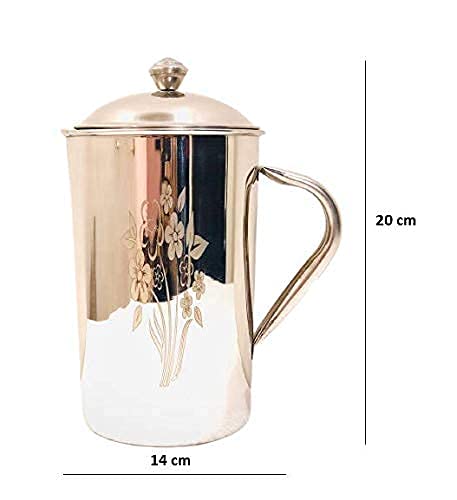 Flower Printed Pure Stainless Steel Jug Pitcher, Capacity – 2 Litre, and 2 Pc Stainless Steel Glass