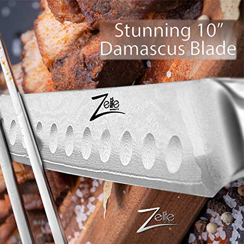 UNMATCHED RELIABILITY AND PERFORMANCE: Hand polished and sharpened using the traditional 3-step Honbazuke method, this 10” meat slicer has an incredible 12° razor edge per side with a mirror polished cutting angle for ultimate sharpness, edge retention and precise slicing every time. Combined with the Damascus steel blade and the beautiful G10 handle, this kitchen knife set provides a perfect blend of reliability and performance.