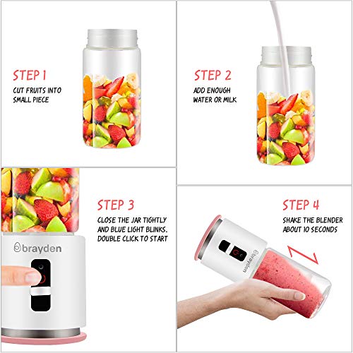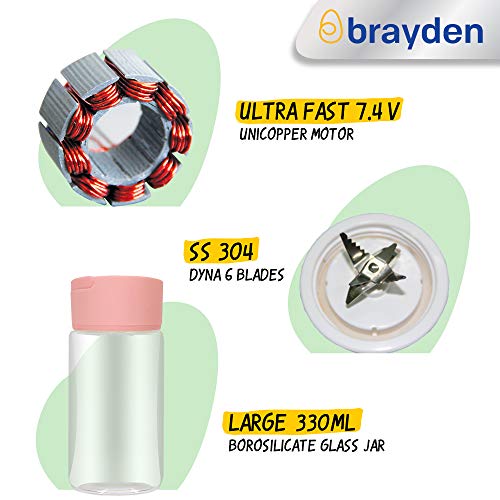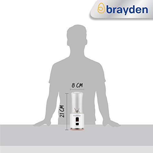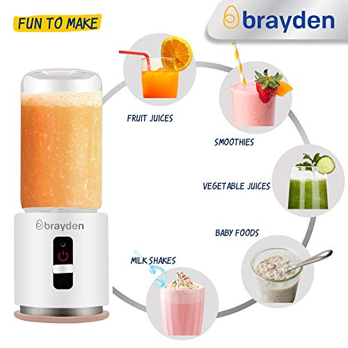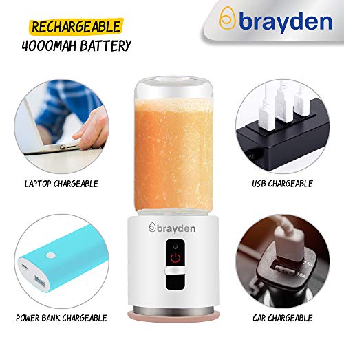 Brayden Fito Rush Rechargeable Power Blender with Transparent Glass Jar, 330 ml, White