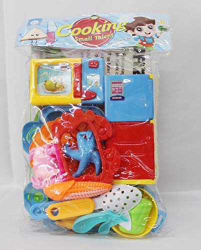 Brunte Kids Cooking Role Play Set with Refrigerator, Microwave Oven, Gas Stove, Vegetables, Fruits, Hot Case for The Girls Doll for Girls, Multicolor