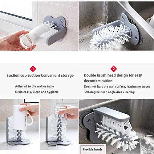 Mukhivala Water Bottle Cleaning Brush Glass Cup Washer with Suction Base Bristle Brush for Beer Cup, Long Leg Cup, Red Wine Glass and More Bar Kitchen Sink Home Tools Grey(L-6,w-6,h-7 inch)