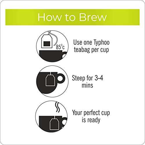 HOW TO BREW: Use one typhoo teabag per cup in boiling water, infuse for 3-5 mins, add sweetener to enhance taste, your Perfect cup is ready.