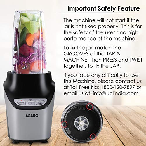 AGARO Nutri Blender with Motor, 2 Speed Modes and Tritan Jar, 1000W, 2 Jar (Black)