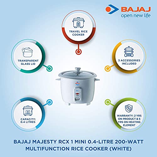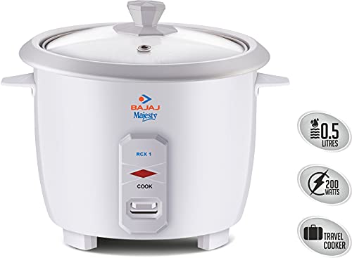 This Bajaj Majesty RCX 1 Mini 0.4-Litre 200-Watt Multifunction Rice cooker can cook maximum 0.20 Kg of rice at once