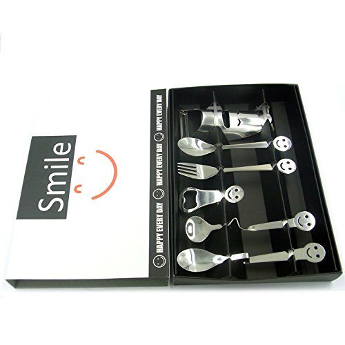 Generic Cute Stainless Steel Smile Face Flatware Cutlery Home Kitchen Set in Spoon Fork