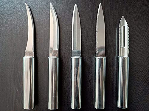 This amazing knife set comes handy with day to day kitchen job. Made ergonomically in Stainless Steel with Steel handles, each of them provide a proper grip.