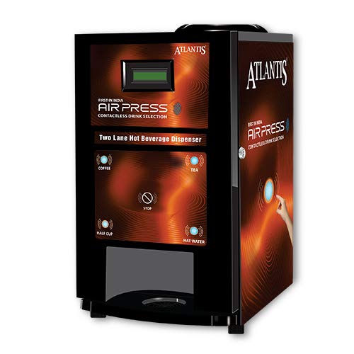 Atlantis Air Press Touchless Tea & Coffee Vending Machine 2 Lane | Free Bottle Cover | Free 200g Instant Tea and Coffee Premix each for Vending Machines