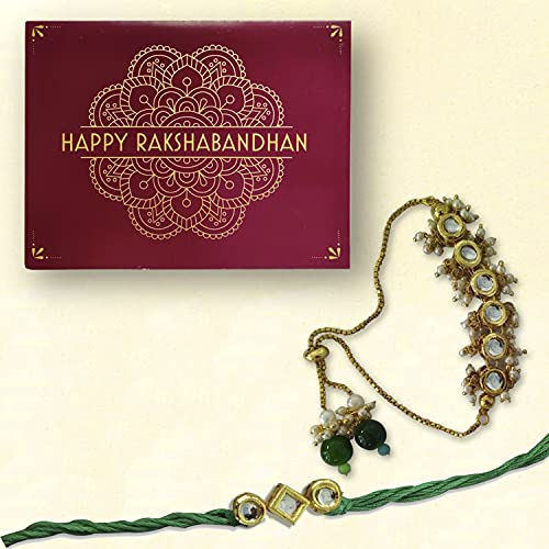 [MATERIAL, Origin & SET SIZE]: This bracelet is made from high quality material .[Set Size] 2 Designer stone Rakhi & 1 Greeting Card with Envelope [Origin] Proudly made in India