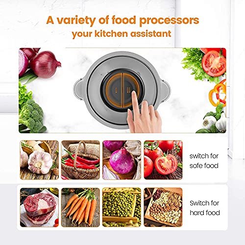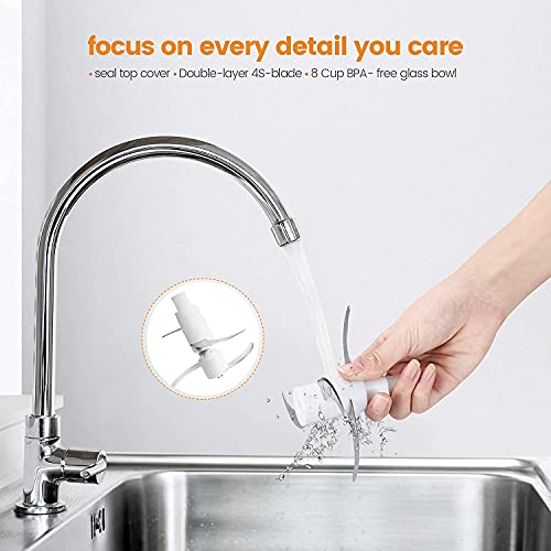 【Save time and effort】: Say goodbye to sore wrists! 350W power unique stainless steel and 4 sharp blades; there are 2 modes to choose from-“I” button and “II” button. The kitchen knife can grind meat, fruits, vegetables, onions, potatoes and baby food in a few seconds by just pressing a button. Its bowl, lid and blade can be cleaned in an automatic dishwasher.Everything is so easy!