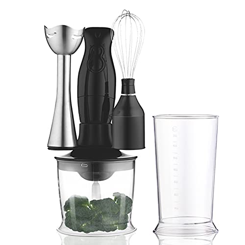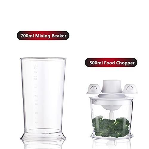 â–Ş 4-in-1: Including stick blender, stainless egg whisk, 500ml chopper, 700ml mixing beaker. This high-performance immersion blender is perfect for chopping, mixing, blending, whipping, and more.