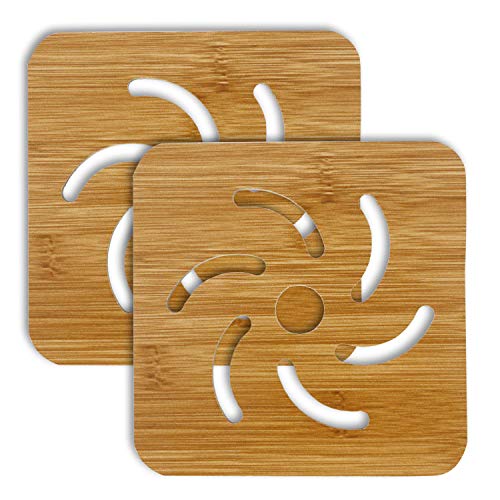 BAMBOO WOODEN COASTERS SET OF 2 – HOKIPO heat pad for dining table coasters are made of natural eco-friendly bamboo. This wooden coaster set help protect countertops, tabletops, dining table, kitchen surfaces from heat damages. Each wooden coaster has a thoughtful functional design to promote air circulation & to prevent heat build up.