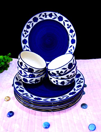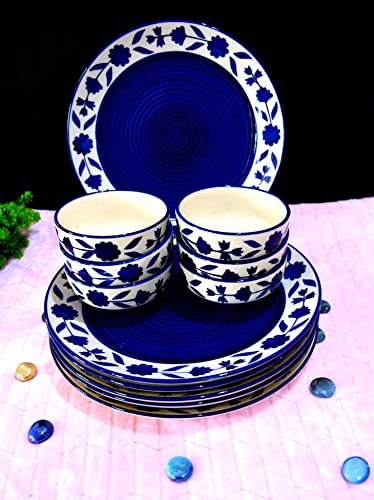 RenHomz Ceramic Dinner Set – Set of 12 Pieces | Hand-Made Blue Legend | Dinner Plates with Bowls | Lead and Cadmium Free , 100% Food Grade