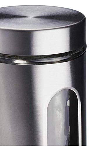 LEZLY® Stainless Steel Plated Glass Kitchen Canister, Airtight Food Storage, Visible Window Seasoning Cereal Container Organizer, Capacity 900ml Each (Medium) – Set of 3 Pieces