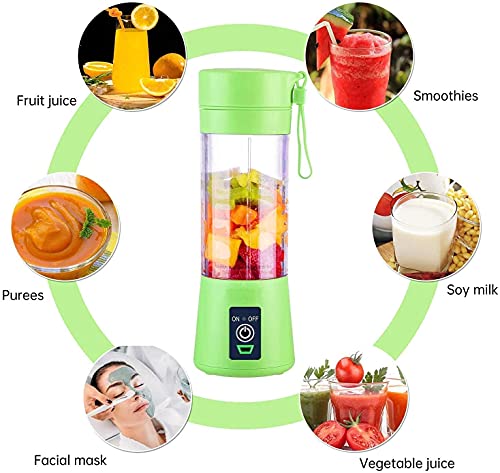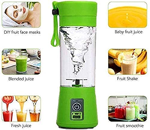 Portable & Compact, Convenient to Charge USB Juicer Blender : Innovative juicer cup, 2 in 1 design, a water bottle and also a juicer, Light weight is easy to Carry to School, Office, Parks, Gym, Yoga, Zumba, Aerobics Sports Coaching classes. Camping anywhere you want to and it also convenient for charge by power bank, laptop, computer, car or other usb devices. It has 4-blade 304 stainless steel blade on the bottom of bottle, so that you can make a cup of fresh and delicious juice by yourself. Perfect for travelling, business trip or other outdoor activities use. Product instructions: Please allow the motor to cool for some time between product uses Burning smell during first few usage is normal due to varnish coating on motor and will stop after few usage cycles. Please Read Instructions given before operation Easy and Safe Cleaning – It has have smart safety protection device, magnetic sensing switch ultra safe to use and clean, the juicer cup’s Food Grade PP body and ABS bottom can be separated, you can easy to clean it . Multi-function – Natural tasty juice, milkshake, smoothie and other baby food protein shake, How to Use: 1) Firstly Cut fruits(Only Citrus/ Juicy and please remove hard shell/skin of Fruits/Vegetables) into small approx. 1.5*1.5 cm and Open cap of juicer bottle and fill bottle about 60% with cut pcs. Now just add water or milk or honey About 20% So fill total 80% of the Cup capacity as per your necessity. double press the switch to start, single press to stop, it will auto stir and mix, DIY juice. Turn on juicer bottle and let’s start blend fruit. Allow 1 min to blend to get juice. Now its ready, Just serve it in wine glass and enjoy. Product Detail: Color : Multi (random color will be shipped) Capacity : 380 ml Battery Capacity : 2000 mAh Lithium battery Motor Model : DC 3.6V Charging Time : About 3 Hours Full Charge Working Current:10-12 Amp. Using times : 10-12 times Idle Protection : Turn Off in 5-7 sec