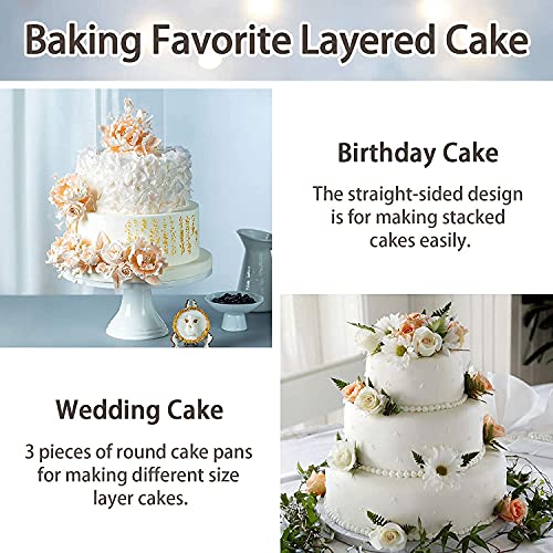 *🍰【EXQUISITE CRAFT】Sturdy 2.5-inch deep sides helps to fully contain batter and perfectly shape the cake without any leakage, 2.5-inch straight side is conducive to creates 90°angle edges for perfect layer cakes, Wide crimping design for comfortable holding, Smooth edge without rough spots or sharp angle, Prevent cutting your hands during using