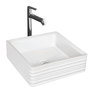 Kemjo Ceramic White Table Top Wash Basin with Accessories | 15.74 x 15.74 x 5.90 inch | WT-Luxora
