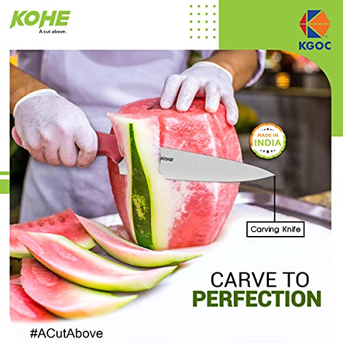 KOHE Kitchen Knife Set – 1 Paring Knife Curved – 1 Tomato Knife Serrated – 1 Kohe Carving Knife(Assorted Color)