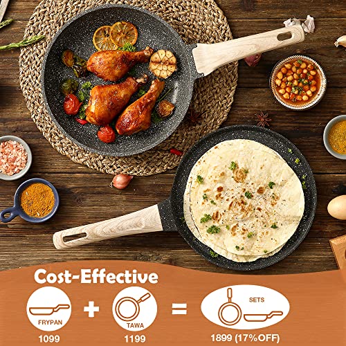 Carote Non Stick Set Combo, Nonstick Cookware Set, Induction&Gas Pan Set, Kitchen Set for Home, Cooking Set of 2 (20cm Granite Fry Pan+24cm Dosa Tawa)