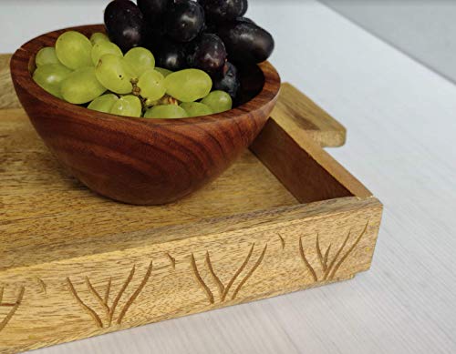 Inspired from the aquatic life around us, and made in Saharanpur’s indigeneous wood engraving craft, this tray is a great pick for your house. Using our serveware, this designer tray will definitely look great, appealing and be the best way to organise your party. Serve your guests cheese and snacks or biscuits and snacks in this serving tray. Our tray also looks great as a tray for dry fruits. The contemporary look on an ancient craft piece is a winner!