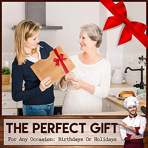 A WORLD OF VERSATILITY: Measuring 16” x 12”, this large cutting board can be placed over stoves to create additional working space, as a ‘hot pad’ on the dining table, or as a compliment-sparking wood serving tray.