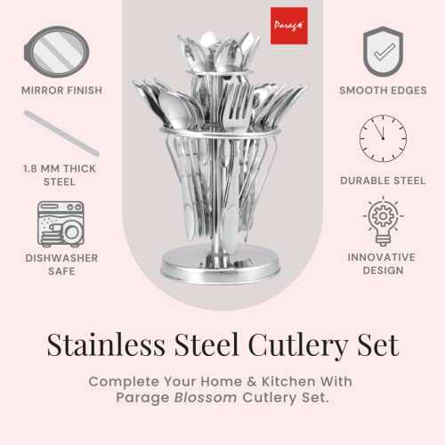 Be the first to review “Parage Blossom Stainless Steel Cutlery Set – Set of 25 (Contains: 6 Table Spoons, 6 Forks, 6 Tea Spoons, 6 Soup Spoons, 1 Stand), Silver”