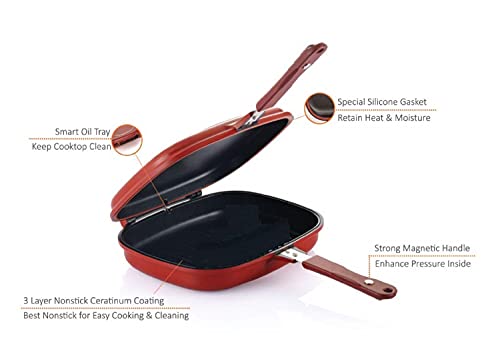 NETXE Happy Call Double Sided Multi Purpose Nonstick Grill Pan with Strong Magnetic Handles,Fry Pan, Multicolour,1 Piece