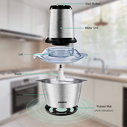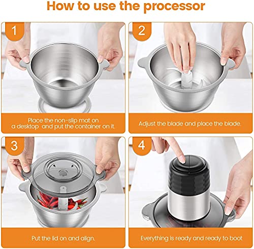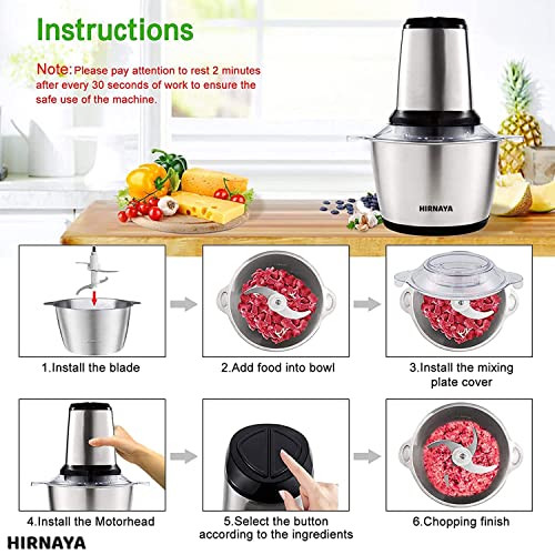 【Powerful function】: Meat Grinder Blender Using 4D stainless steel blade 4D design, the “S”-shaped double blade is very suitable for more efficient and faster cutting of food from all angles of 360 degrees. In addition, the food chopper with a 2-liter stainless steel bowl is stronger, healthier and more shock-resistant than other inexpensive glass bowls.