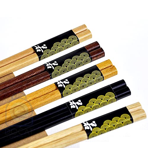 DOCAT Natural Wooden 5 Pair Chopsticks with 1 Spoon Set, Solid Creative Flatware Non-Painted Reusable Wooden Chopsticks Gift Box Set