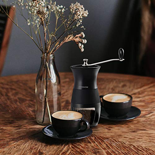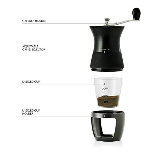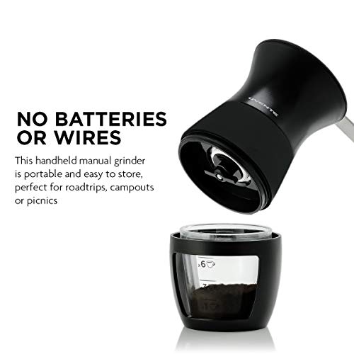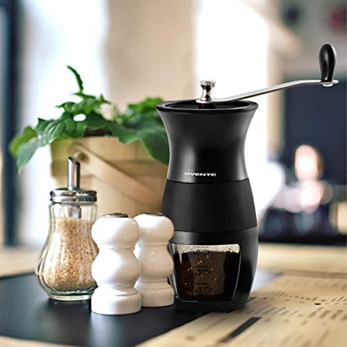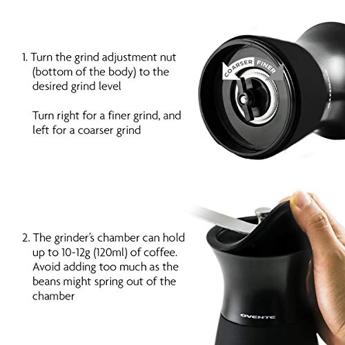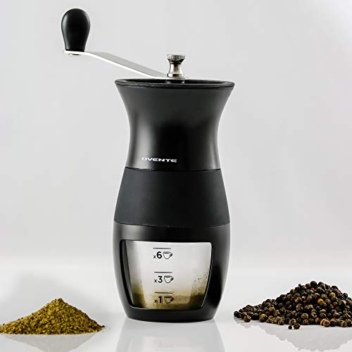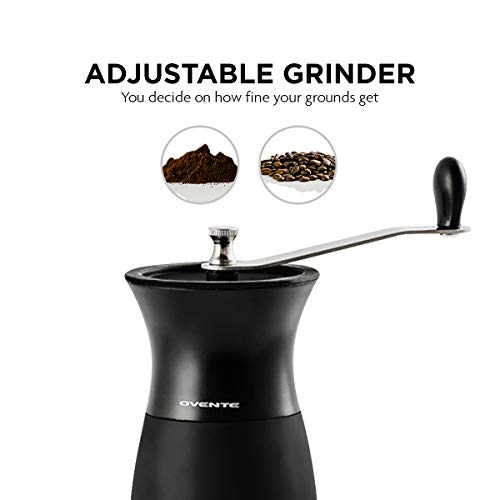 OVENTE Burr Manual Coffee Grinder 12 Gram Capacity, Stainless Steel Material with Compact and Portable Features, Perfect Grinding for Easy Fresh Espresso, Dry Herbs, and More, Black (CGM130B)