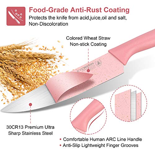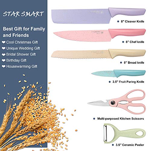 Colorful Knives Set of 6 PCS, Professional Carbon Stainless Steel Chefs Knives Set With Non-Stick Coating & Ergonomic Wheat Straw Handle, Sharp Kitchen Knife Boxed Set for Slicing,Paring and Cooking