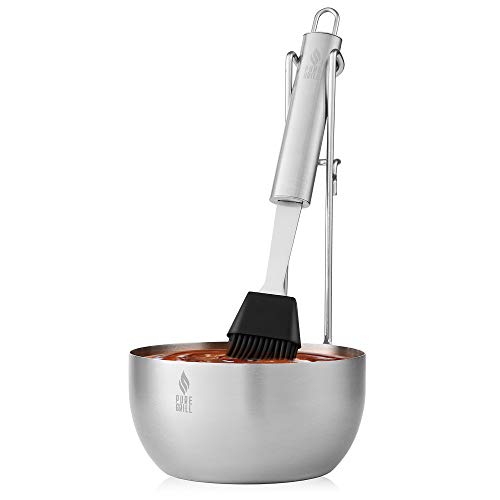 Pure Grill’s BBQ sauce pot and silicone basting brush are constructed of solid food-grade stainless steel. Designed to resist rust and warping, this sauce pot and basting brush are built to last. The generous bowl size of the sauce pot holds an impressive 18.5 fluid ounces of your favorite BBQ sauce, glaze or marinade. Grill with confidence, the silicone brush head is BPA-free and is also removable for easy cleaning. Add this barbecue accessory to your grilling arsenal and conveniently create the most flavorful meals.