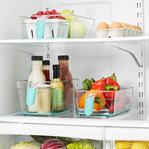 Set of 6 plastic storage bins for use in kitchen, pantry, refrigerator, and more