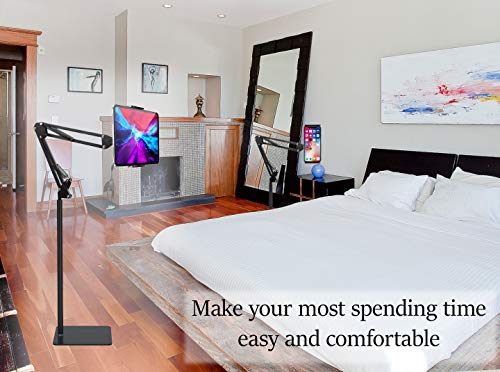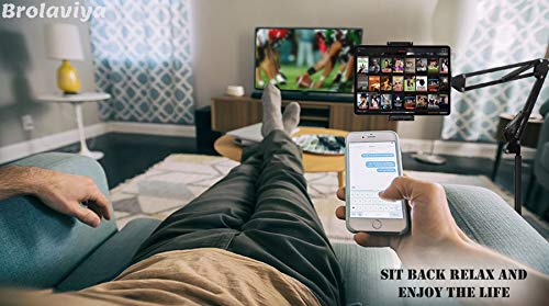 BROLAVIYA Multi-Direction Universal Tripod Floor Stand for 4′-10.2′ Diagonal inch, with Gooseneck Clip Lazy Arm Bracket for Both Mobiles and Tablets for Bedroom, Office, Kitchen