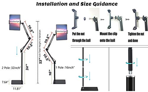ADJUSTABLE GOOSENECK FLOOR STAND – The Brolaviya adjustable cell phone holder tilts side to side and rotates 360 degrees. Height can be changed from 2 feet to 4.4 feet (24 inch to 53 inch)