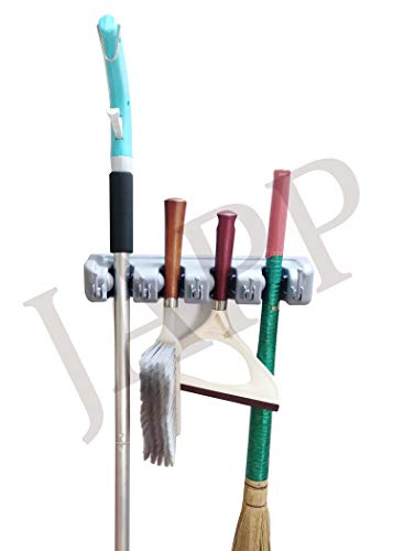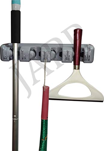 NO-SLIDE- Wall mounted mop and broom holder with spring loaded, double rubber gripped slots, whether wet mops, dirty rakes or baseball bats, can easily hold heavy tools with a no-slip grip ✔️