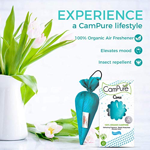 FIRST OF ITS KIND!: CamPure Camphor Cone is dual purpose – it fills the air around you with delightful, fresh scent, AND in some situations its insect repelling properties can help keep mosquitoes away (or put it in your closet to help protect your clothes). No fillers, additives or bases – just 100% Organic Raw Materials, including camphor with the lowest level of impurities, and high-quality fragrance.
