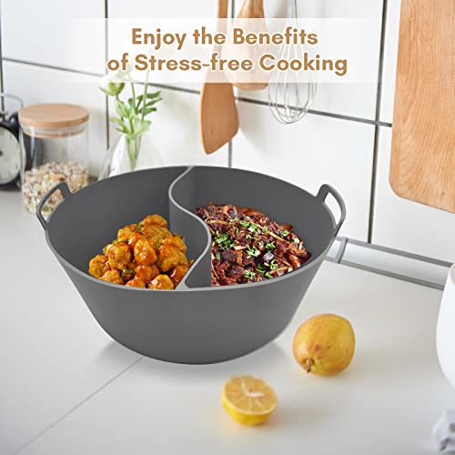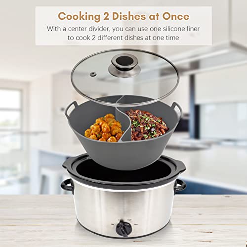 💭【Make Two Dishes at Once】With a center divider, you can use one silicone liner to cook 2 different dishes at one time. Practical design for family dinners and friends gathering. Dual handles design make it easy for you to take out the food from slow cooker.