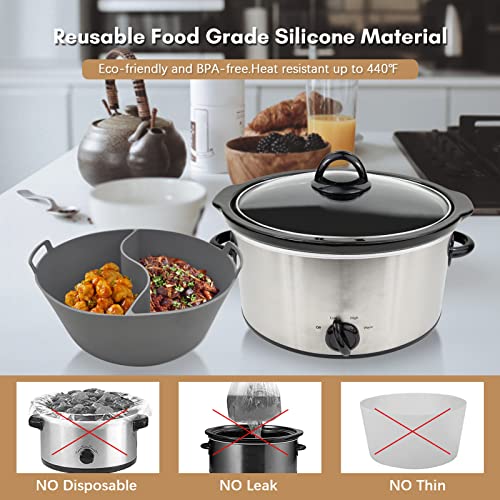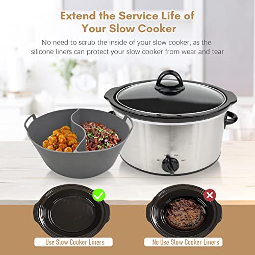 2pcs Slow Cooker Liners for 6/7/8 Quarts Slow Cooker Food Grade Silicone Crock-Pot Divider Liner Reusable Leakproof Dishwasher Safe Cooking Liner for Slow Cooker