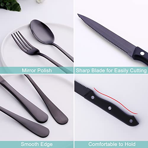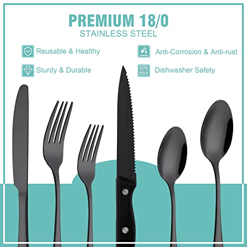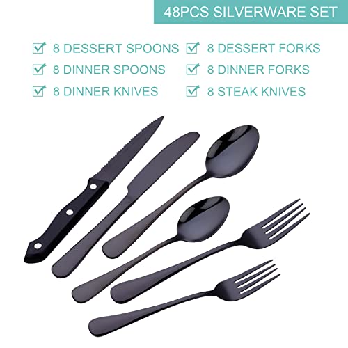 Be the first to review “48-Piece Black Silverware Set with Steak Knives, Kitiok Stainless Steel Flatware Set for 8, Include Forks Knives Spoons, Dishwasher Safe”