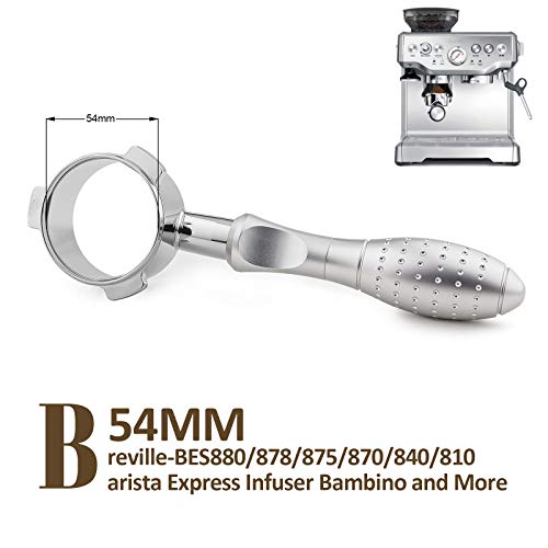 Be the first to review “54mm Bottomless Portafilter for Breville Barista Express, Infuser, Bambino Plus, Duo Temp Pro, BES870XL, BES878BSS, BES880BSS, BES840XL, BES810BSS and More Breville Espresso Machine – Silver”