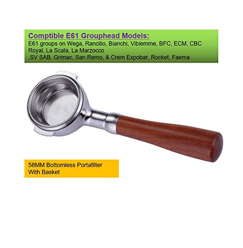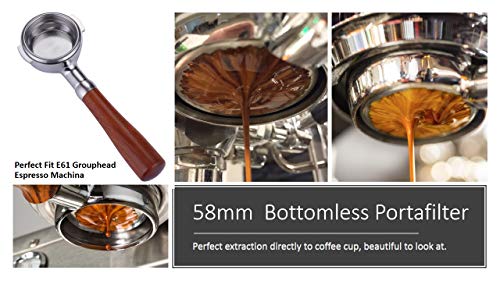 ☕【Better Crema and Taste】: In the hands of an experienced barista with fresh espresso beans, a coffee bottomless portafilter will yield 50% or more of Crema. Why? Your espresso shot will come in contact with no other surface than the bottom of you 58MM E61 coffee portafilter basket. No portafilter bottom and no spout. This keeps the tiny Crema bubbles we all look for in a perfect shot intact and unharmed.