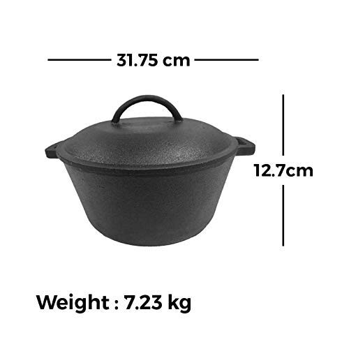 Pack Contains – Cast Iron Dutch Oven 5L & Skillet 10IN. At 70’s Kitchen, we do a traditional way of seasoning (3times) with organic heating.
