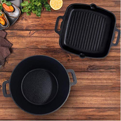 Pre-Seasoned. Pack Contains – Cast Iron Dutch Oven, 5L & Grill Pan, 10.8Inch. At 70’s Kitchen, we do a traditional way of seasoning (3times) with organic heating.