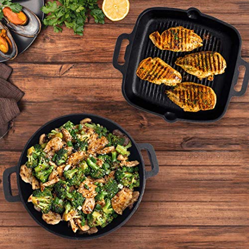Multipurpose Cookware – DUTCH OVEN – For Curry, Biryani, Searing, Sauteing, Simmering, Braising, Roasting and Frying. GRILL PAN – For Grilling, Baking, Searing, Broiling & Braising. It works On the Stove, In the Oven, On the Grill or Over the Campfire.