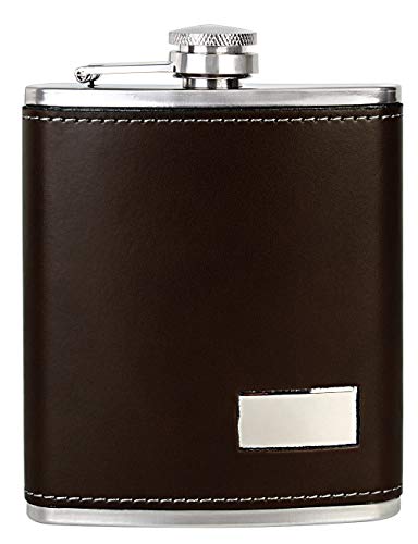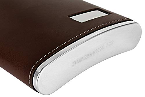 7Trees® 7 Oz / 207 ml Stainless Steel Faux Leather Brown Hip Flask + 2 Shot Glasses + Funnel