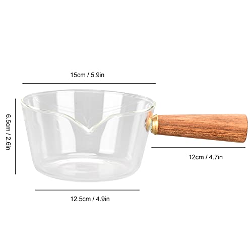 V SHAPED SPOUT: A glass milk pot with a V shaped spout for easy pouring and no dripping, suitable for hot milk, salads, noodles, etc