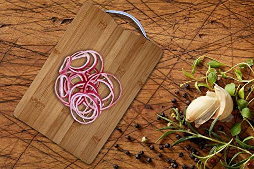 The bamboo cutting board is made of sturdy bamboo wood but designed to be lightweight to give you a comfortable time while cooking.