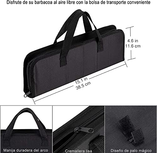 Practical Design, Convenient Carrying — 9-piece barbecue grill tools in an Oxford cloth zippered bag, which keeps tools firmly and organized. You can easily carry it anywhere, and it is perfect for travel and storage.