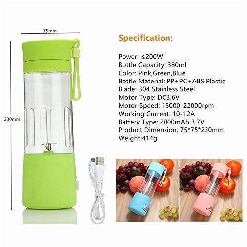 Stainless steel blade, strong power, to ensure that the juice is fast and convenient. Can mix fruit and vegetable varieties. It is Small size, portable multi function, can be used as ordinary cup blender. Safety, products with electromagnetic induction safety switch, when the body is separated from the base, automatic power-off. Fast stiring speed that can make a cup of juice within one minute. Features: Portable, can be used as both juice blender and water cup Can mix all fruits and vegetables together Healthy and environmental friendly