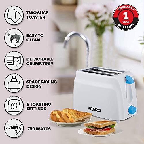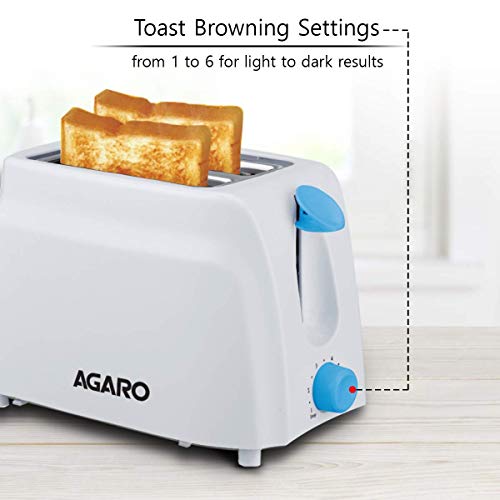 AGARO – 33263 750-Watt 2-Slice Pop-Up Toaster with 6 Toasting Settings & Removable Crumb Tray (White)